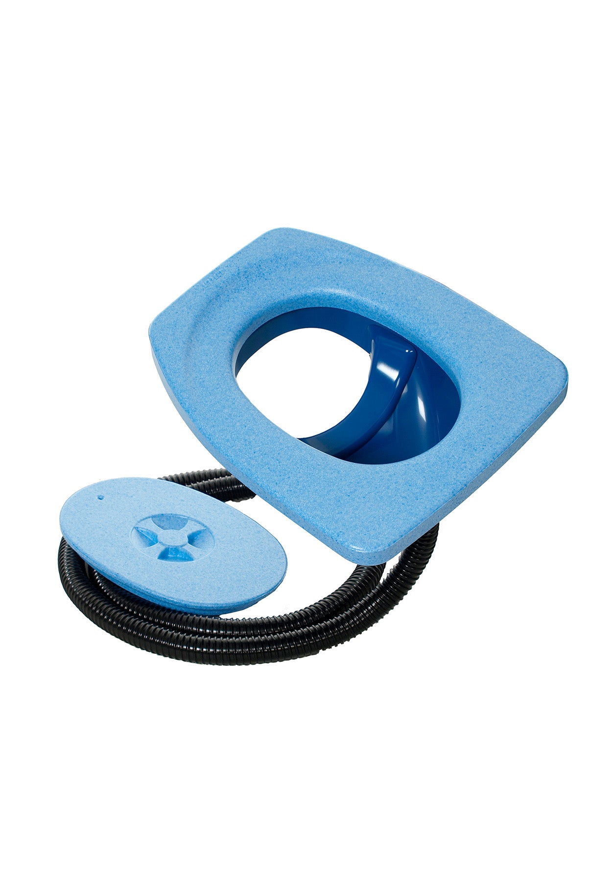 The Separett Privy kits convert your existing outhouse or latrine to a urine diverting system. The reduction of urine from solids greatly reduces the odor and decomposition periods. The unit is installed on the latrine platform, and the attached urine hose diverts fluids from the current holding location. The insulated seat with cover assures a good seal over the Privy when not in use. The molded foam seat warms with your body on contact making the colder seasons more pleasant. The lid has a location for a tether to assure the lid is not separated from the unit. Also available in grey. Warranty period is two years. *The lower diagram is to display a typical installation for the Privy unit - the Privy package includes the insulated seat, molded urine diverter and hose. The shipping box includes a template for the seat cut out. If you are considering mounting directly over a bucket, it requires a 14 inch diameter top.